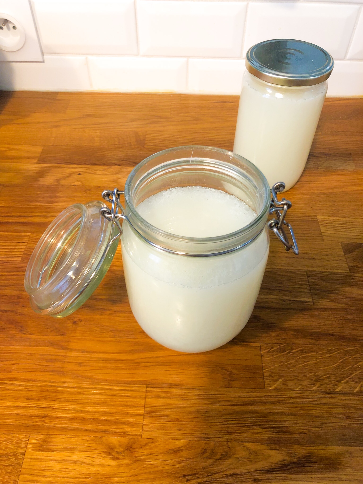 Et voilà c’est fini ! Ci-dessous avec le curseur vous pouvez voir la lessive juste après l’avoir réalisée, et après quelques heures elle se durcit.