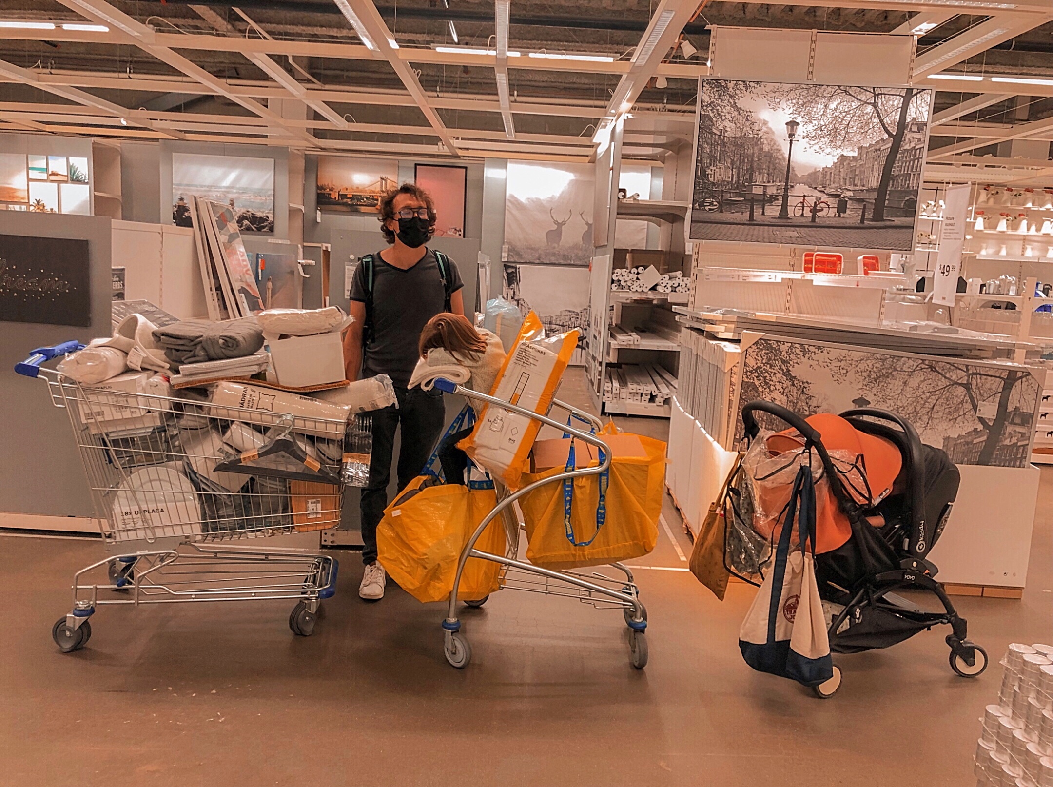 Au milieu de toutes ces visites, il a fallu commencer à s’équiper également : on remercie IKEA ! Au moins un magasin ou l’on n’est pas dépaysé : on connaît la qualité et le côté pratique c’est qu’on trouve des articles pour toutes les pièces de la maison – pas la peine de faire 50 magasins. L’inconvénient c’est qu’actuellement IKEA doit faire face à des problèmes d’approvisionnement et des pénuries de matières premières (article sur midilibre.fr). Ainsi nous avons dû faire une commande en ligne pour trouver les articles manquants au dépôt, heureusement car sinon on dormait par terre! Pour nous meubler, j’ai également fait dans le seconde main avec Marketplace de Facebook, les américains vendent souvent beaucoup de choses lorsqu’ils déménagent donc j’ai pu trouver quelques articles sympas notamment la table, les chaises… Lors de ma visite à Washington Accueil Association, j’ai fait la connaissance d’une française très sympa qui est arrivée depuis 2019, on a bien sympathisé et elle avait un lit bébé qu’elle n’utilisait plus – vendu pour Octave !